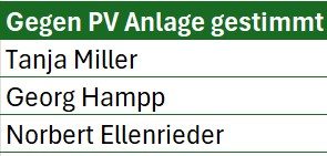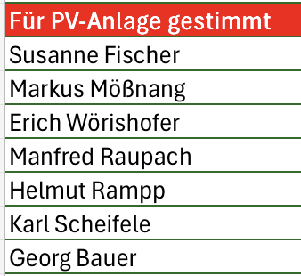 Diese Markträtinnen und Markträte haben gegen das PV-Projekt gestimmt.